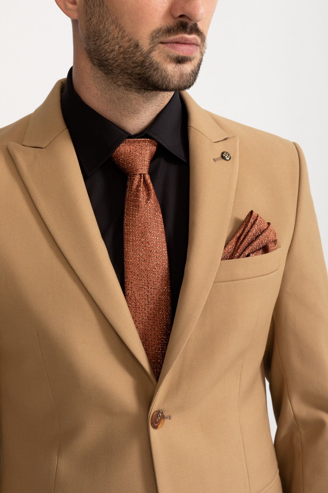 Modelul este unul elegant, şi a fost confecţionat dintr-un material exclusivist combinand vascoza cu poliesterul, rezultând un costum deosebit , pentru un look rafinat unic, ce te va pune cu siguranţă în evidenţă la nuntă sau în altă ocazie formală.