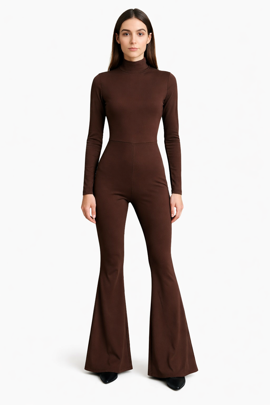 Salopeta Lady Hurrem în nuanță de maro profund redefinește eleganța modernă printr-o croială sofisticată și feminină. Designul cu guler înalt și mâneci lungi creează o siluetă rafinată, în timp ce pantalonii evazați alungesc vizual linia corpului, oferind un efect spectaculos.